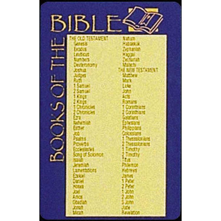 This handy bookmark lists all the books of the Bible in order – a great reference for studying the Bible. Sold in packs of 12, so these are great gifts for Sunday School, Bible study groups and more. Laminated card measures 2 1/2″” x 3 7/8″”.