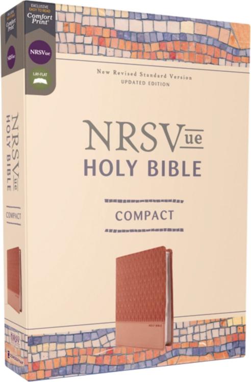 The perfect on-the-go Bible. With an easy-to-read typeface and a slim size, the NRSVue Holy Bible, Compact invites you to explore the depth and beauty of Scripture anywhere and at any time. It elegantly unites the portability you’d expect in a compact bible with a beautiful and readable typeface.Skillfully crafted for the New Revised Standard Version, Updated Edition (NRSVue) text, Zondervan’s exclusive Comfort Print(R) typeface provides a smooth reading experience that complements the foremost Bible translation vetted by Protestant, Catholic, Orthodox, Evangelical, and Jewish scholars. Continuing the legacy of the NRSV, the NRSVue aims to faithfully serve the church in personal spiritual formation, in the liturgy, and in the academy. With revisions based on new textual evidence, historical insights, and linguistic precision, this updated edition delivers a translation of Scripture based on meticulous care for accuracy and readability.Features:The full text of the New Revised Standard Version, Updated Edition (66-book Protestant canon), vetted by an ecumenical pool of Christian academics and renowned for its beautiful balance of scholarship and readabilityPortable size – slightly larger than a 4×6 notecardElegant two-color page design in a double-column formatPresentation pageSatin ribbon markerExclusive Zondervan NRSVue Comfort Print typeface