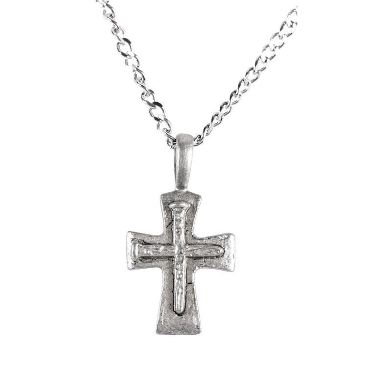 Wide flare pewter Cross with raised cross side fed bale on 24″ stainless steel chain.