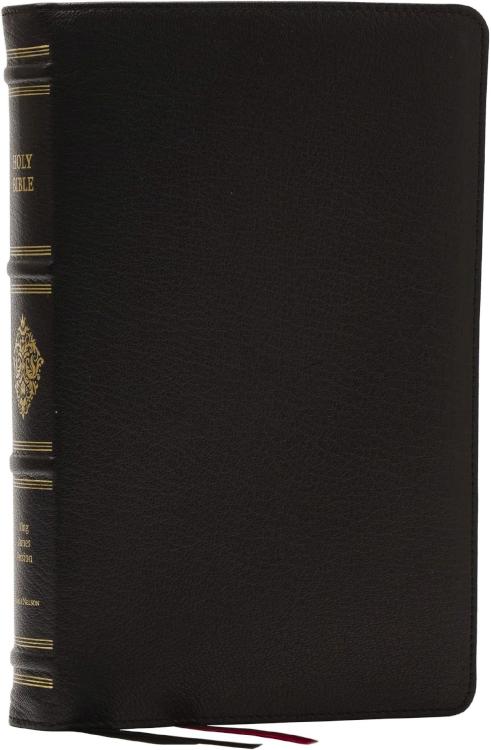Enjoy this beautifully crafted KJV Bible edition honoring the legacy of the King James Version Bible. The popular Sovereign Collection continues Thomas Nelson’s long history and stewardship publishing beautiful Bibles. Inside you will find the timeless KJV with elegant drop cap illustrations leading into each chapter, the easy-to-read, line-matched Comfort Print typeface inspired by centuries-old Thomas Nelson editions, as well as essential study tools like a concordance, reading plans maps, and extensive, end-of-page cross references.This Premier Collection edition is a treasure built for a lifetime in God’s Word. It features a supple goatskin leather cover, durable edge-lined binding, premium European Bible paper, beautiful art gilded edges, and three ribbon markers.Today, more than 400 years since its initial publication, the bestselling King James Version Bible continues to inspire, encourage, and strengthen people from all walks of life. The KJV is considered one of the most influential and beautiful works of literature in the English language and continues to be the favorite translation for millions of Christians.Features include:Presentation page to personalize this special gift by recording a memory or a noteBible book introductions provide a concise overview of the background and historical context of the book about to be readLine-matched classic 2-column format Extensive end-of-page cross references allow you to find related passages quickly and easilyReading plan guiding you through the entire Bible in a yearConcordance for looking up a word’s occurrences throughout the BibleFull-color maps show a visual representation of Israel and other biblical locations for better contextThree satin ribbon markers for you to easily navigate and keep track of where you were readingArt-gilded page edges36 gsm European Bible paperPremium goatskin cover with classic raised spine detailsDurable Smyth-sewn binding lies flat in your hand or on your deskEasy-to-read 9.5-point KJV Comfort Print