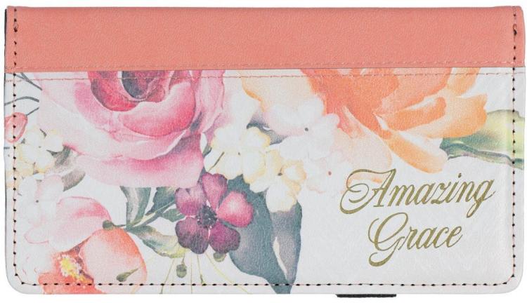 Use the Amazing Grace Rose Pink Faux Leather Checkbook Wallet~ with its timeless message and classic design~ to securely organize your checks~ cards~ and cash.