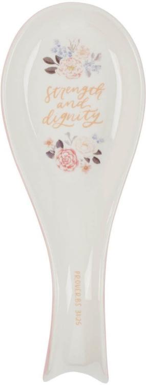 Strength And Dignity Pink Floral Ceramic Spoon Rest Proverbs 31:25
